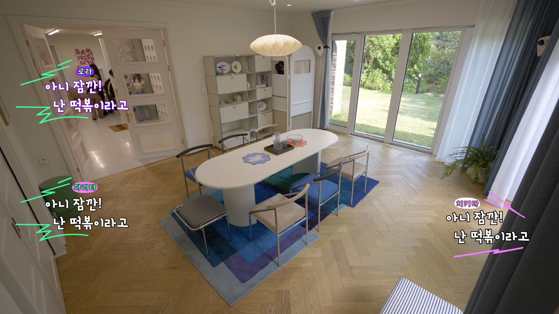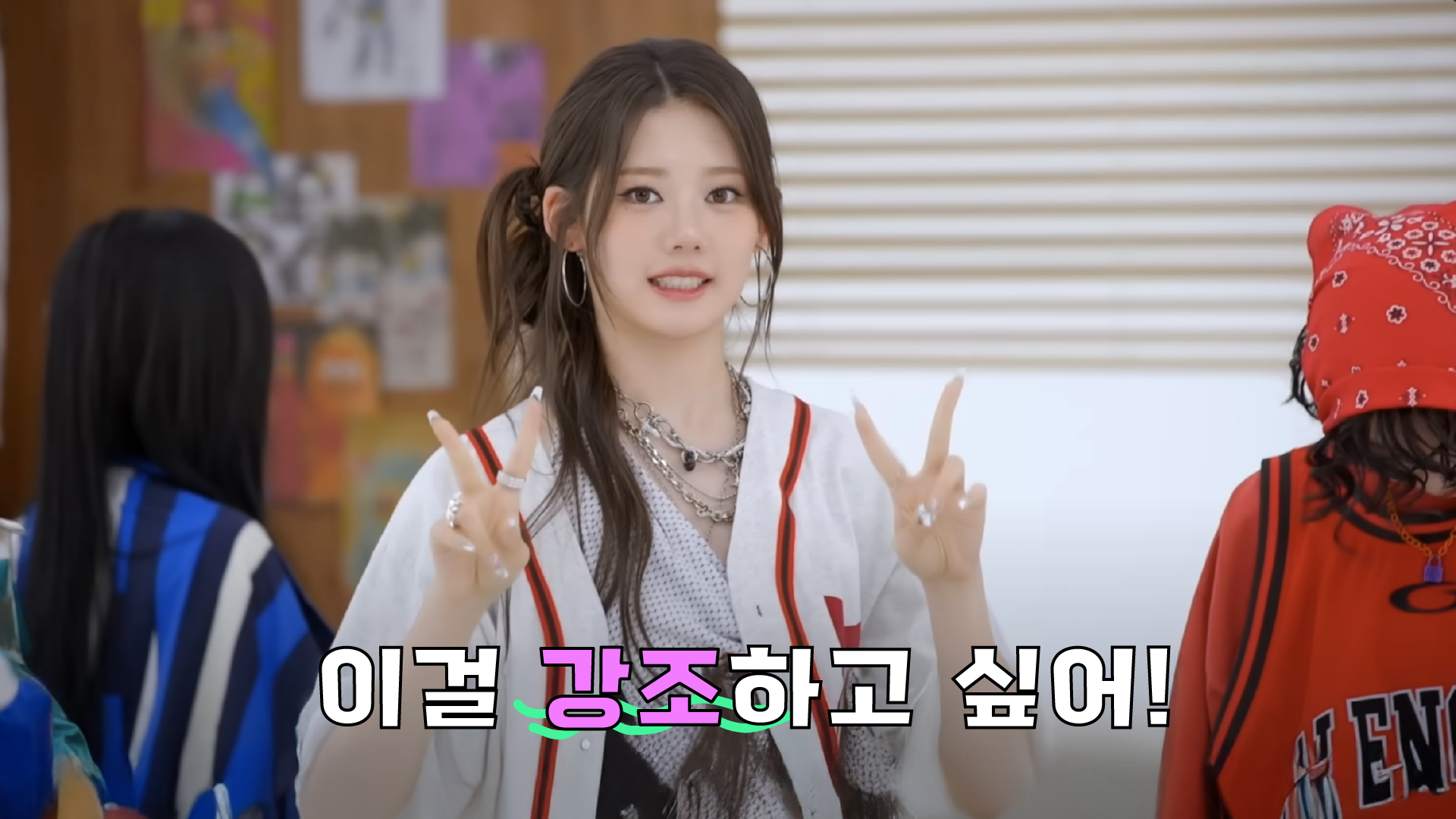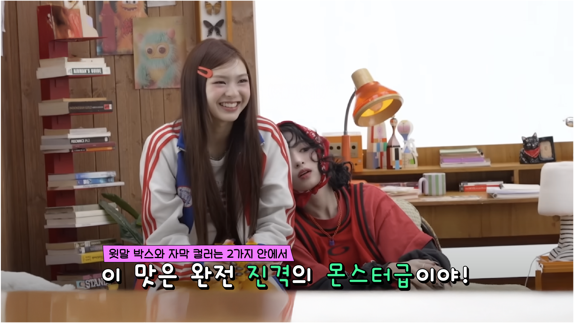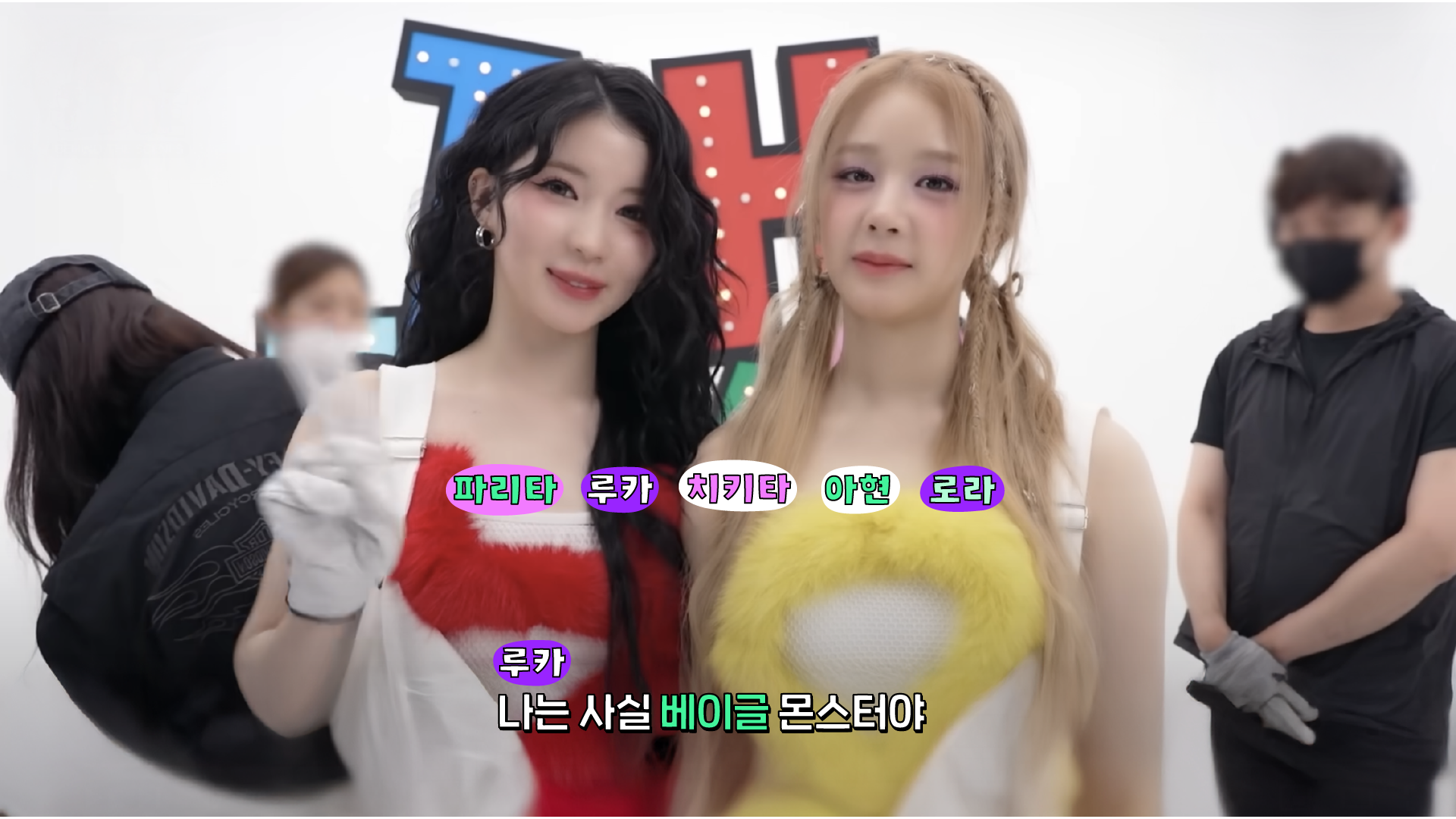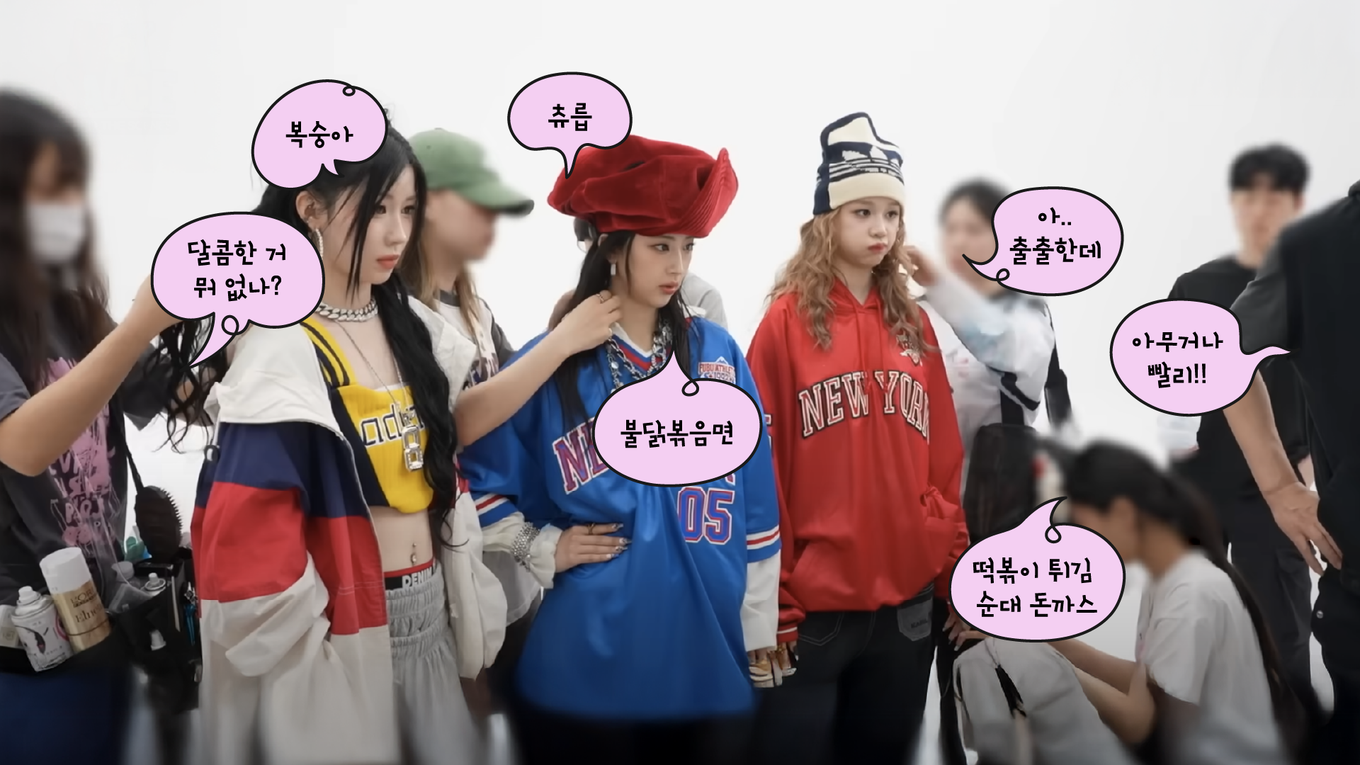 자막 디자인은 멤버들의 목소리를 시각적인 문자로 옮기는 요소인 만큼, 그 어떤 디자인 요소보다도 멤버들의 성격과 밀접하게 맞닿아 있다고 판단했습니다. 어리고 사랑스러운 그녀들의 분위기와 가장 잘 어울리는 인상을 찾기 위해 폰트 선택에 많은 시간을 들였으며, 컬러는 타이틀과 달리 로고에서 사용한 컬러보다 그 수를 줄여 보다 선명하고 집중도 높은 인상을 목표로 설계했습니다.