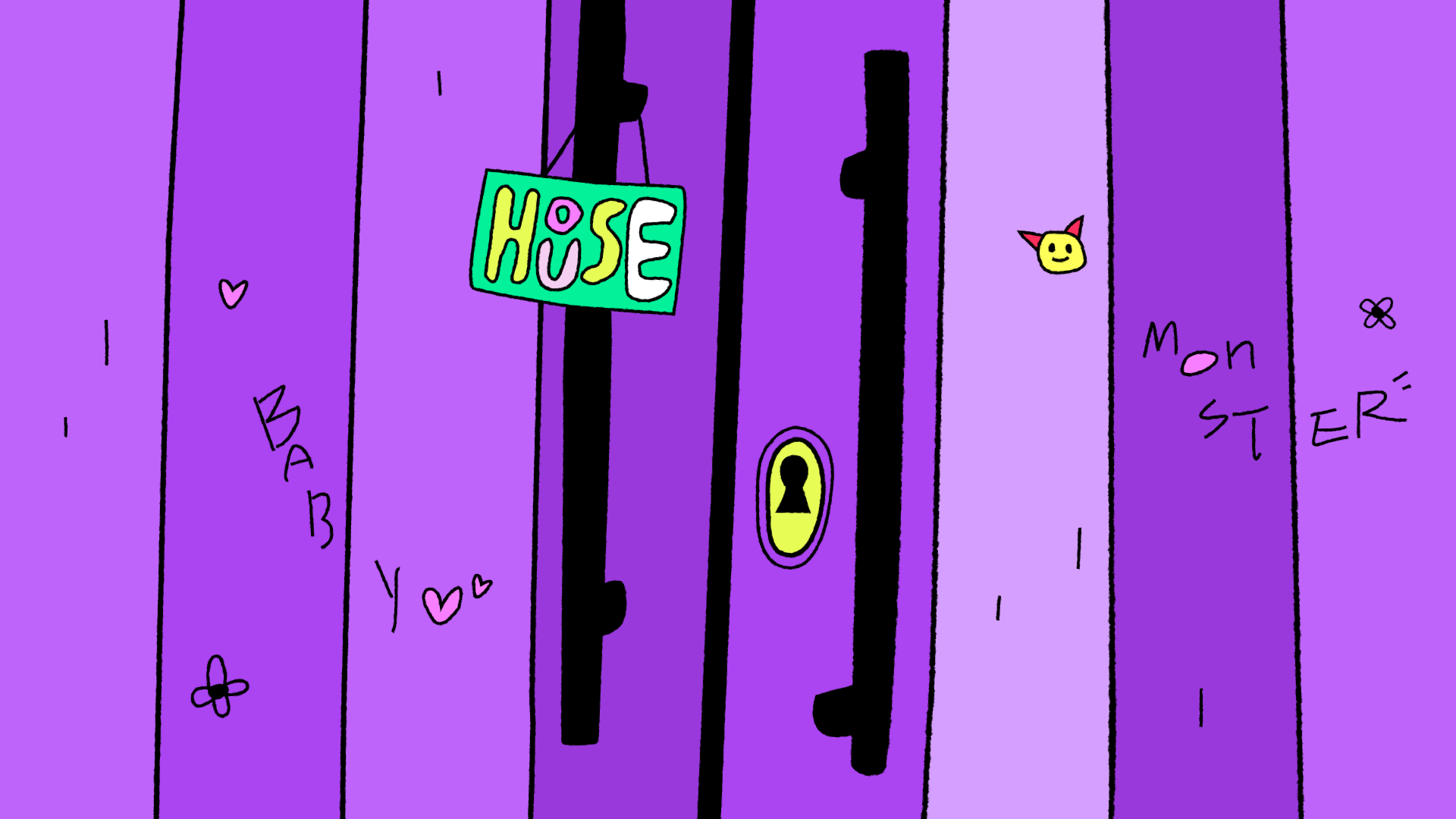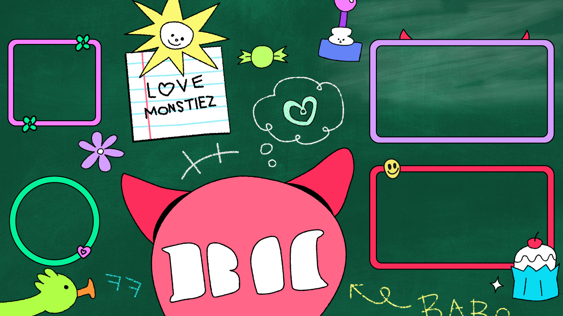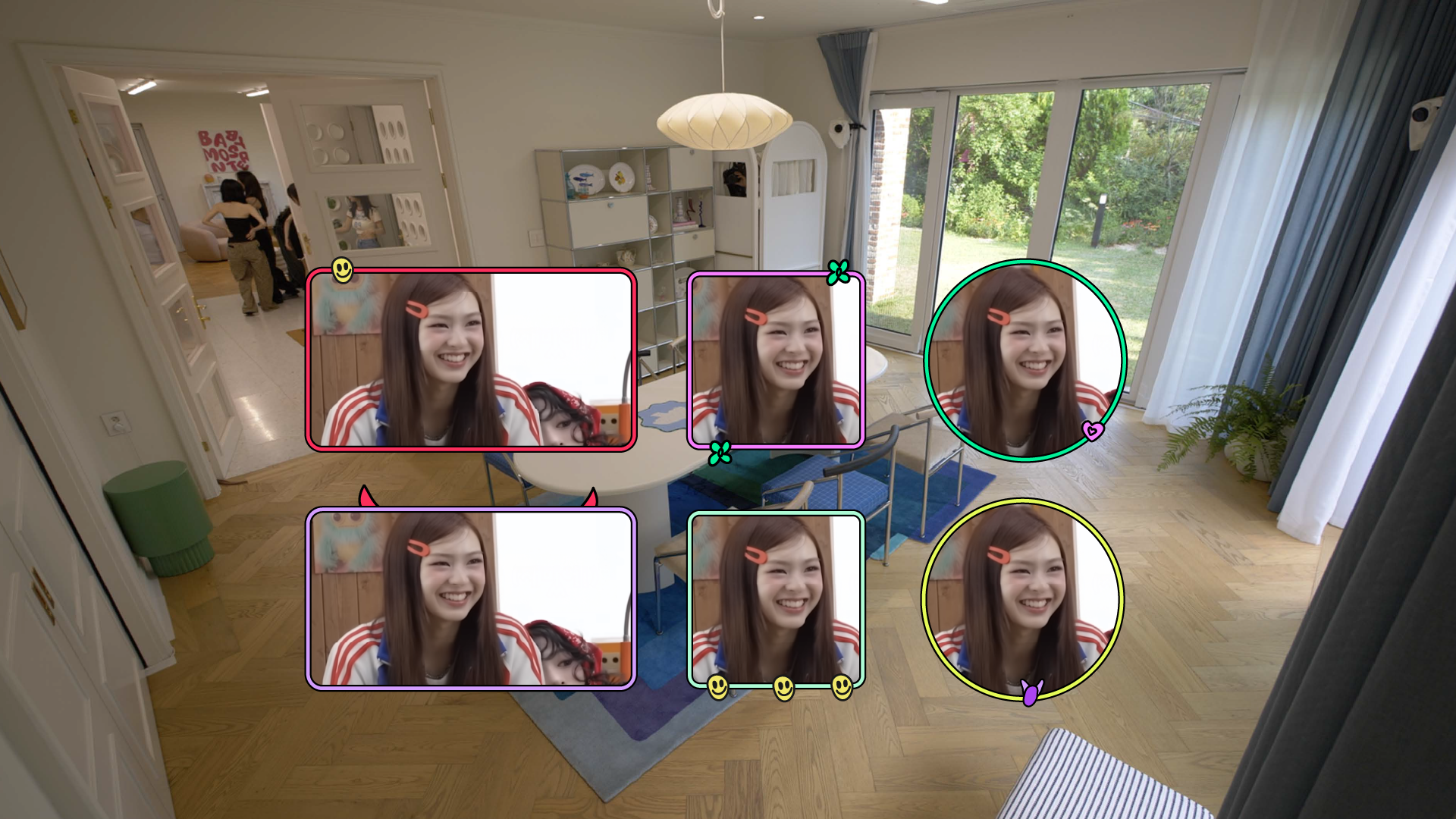 BABYMONSTER의 타이틀 스타일프레임은 로고에서 사용된 대비감 있는 컬러를 확장해, 콘텐츠의 시작부터 시선을 사로잡는 시각적 리듬과 에너지를 전달하는 데 초점을 맞췄습니다. 베몬하우스를 하나의 공간적 무대로 설정하고, 그 안에서 벌어지는 다양한 활동을 멤버들이 선호하는 동물과 오브제를 매개로 집의 단면을 이동하는 구조로 해석했습니다. 귀엽고 경쾌한 오브제와 다채로운 컬러 레이어를 통해, 밝고 유쾌한 콘텐츠의 시작을 표현하고자 했습니다.