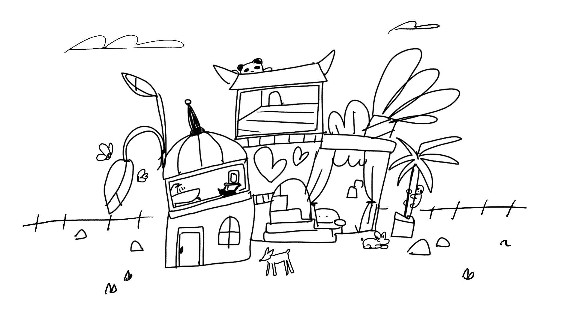 As the animation features multiple scene transitions within a short duration, the visual approach was intentionally kept simple to ensure clear viewer comprehension. Special attention was given to the ending, as it plays a key role in defining the overall impression. The lively and visually dense scenes gradually conclude as the main gate of BAEMON HOUSE closes and the camera pulls away, with the addition of the house’s signature horn decoration to clearly communicate the setting and provide a decisive, recognizable ending.