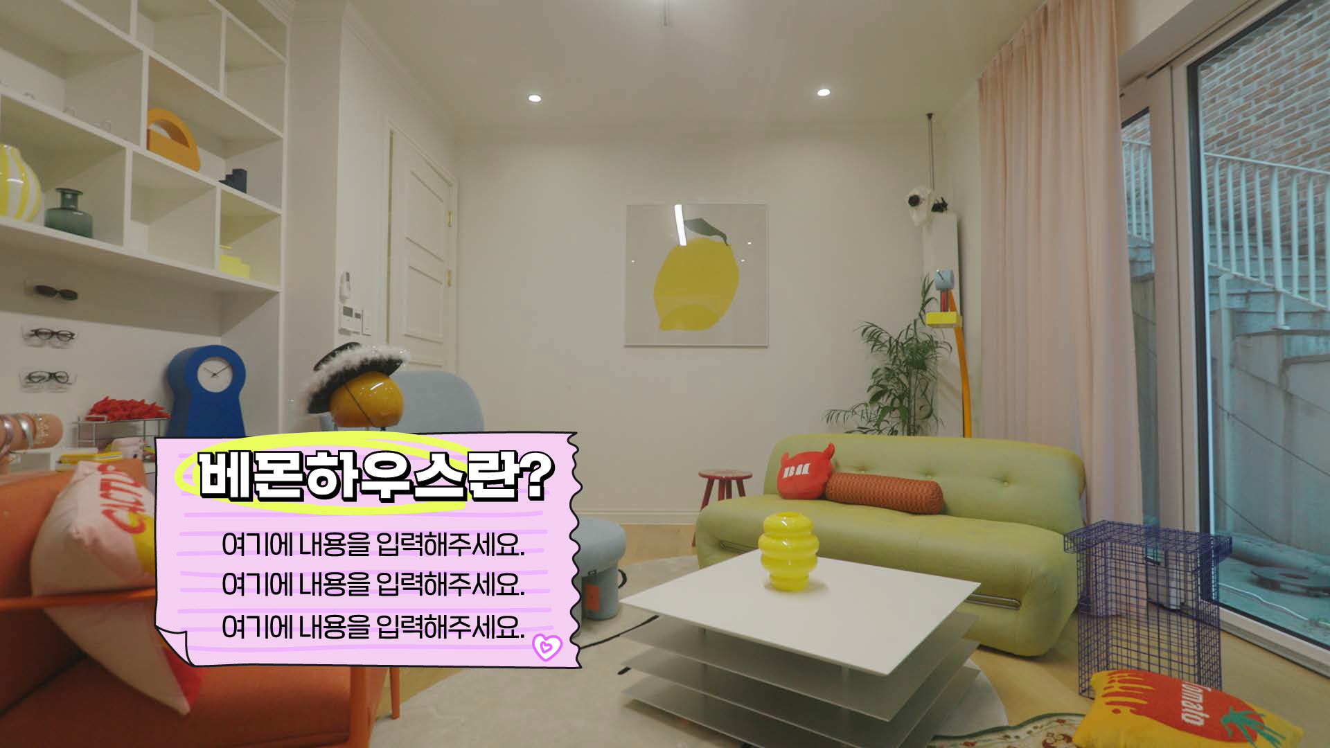 밝고 경쾌한 오브제와 컬러의 조합으로, 콘텐츠의 시작부터 즐거운 에너지를 전달합니다.